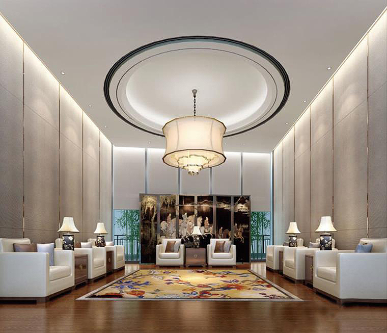 設(shè)計說明:整個空間分為前臺區(qū),開放辦公區(qū),接待區(qū),多媒體會議區(qū),餐飲區(qū),董事長辦公區(qū),會客區(qū)等多個功能分區(qū)。前臺區(qū)域灰網(wǎng)紋的大理石地面,白色石膏板吊頂,背景墻燈槽打光,營造明亮,簡潔空間感。其它空間多以地毯,跌級石膏板造型天花為主。整個空間的搭配穩(wěn)重,大氣。