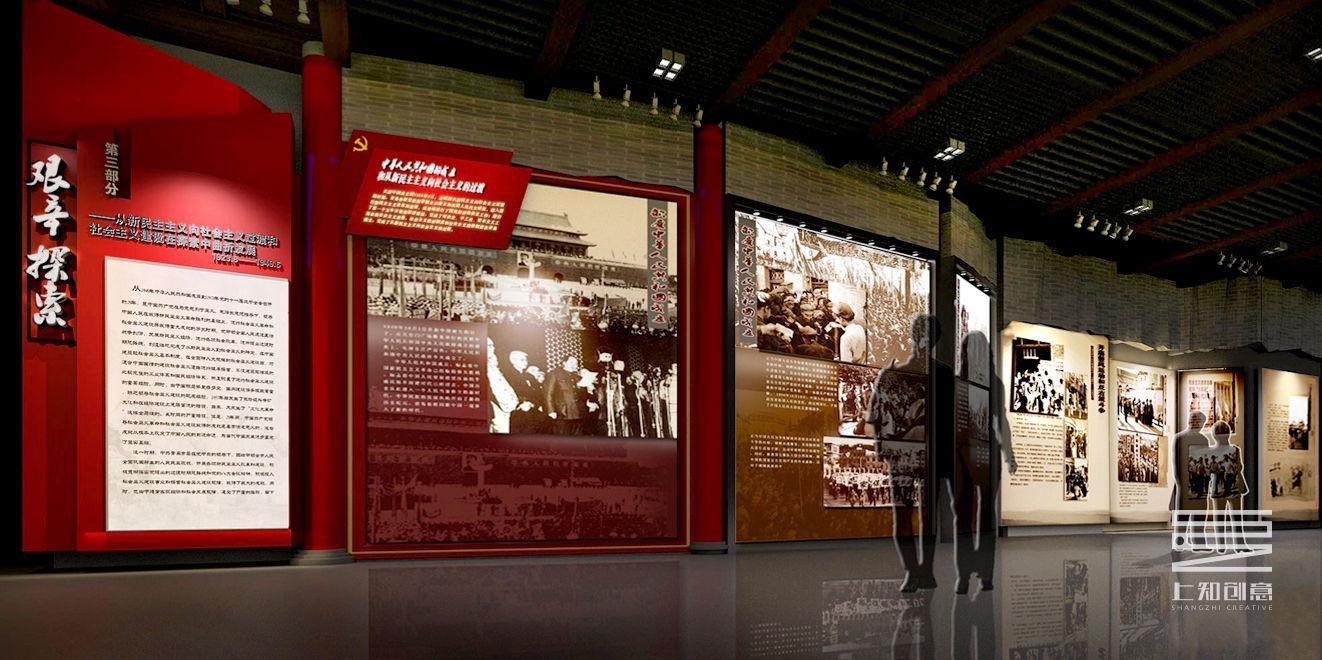 設(shè)計理念:黨建館是學習黨的優(yōu)良傳統(tǒng)及先進思想的主要平臺,展示積極進取決心,傳達其高瞻遠矚的理想情懷。傳達黨的先進思想理念,學習黨的精神,緊跟時代步伐,響應(yīng)共筑中國夢的號召。從而為企業(yè)、為社會帶來新的前進動力。